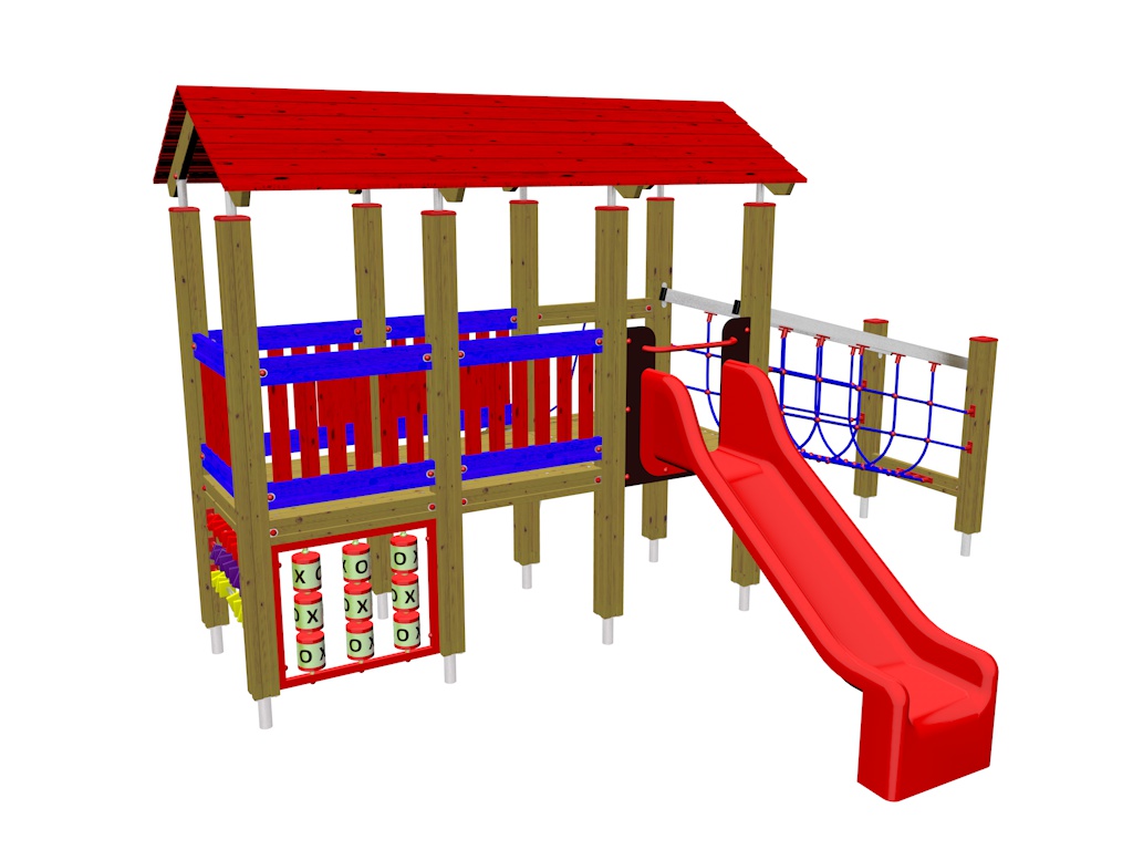 Průlezka na dětská hřiště s věží a skluzavkou. Zde v kombinaci s atraktivním: síťovým můstkem šikmou lezecí plošinou s lanem počítadlem piškvorkami Velmi atraktivní herní prvek! Velmi atraktivní herní prvek! Tuto herní sestavu ocení zejména děti v mateřských školách, na dětských hřiš... celý popis