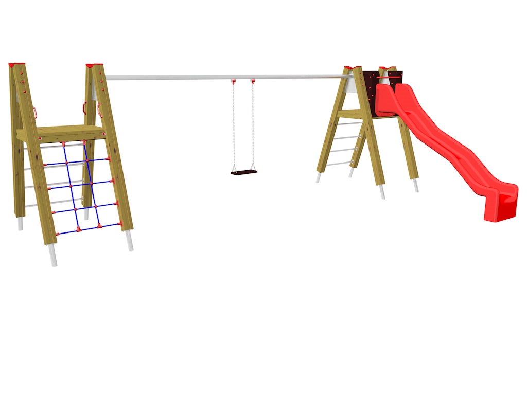 Klasická řetězová houpačka v kombinaci s klouzačkou, žebříkem a sítí pro děti od 3 do 14 let. Je vhodná na veřejná prostranství a hřiště, stejně tak jako do škol či školek nebo k soukromým objektům, hotelům, penzionům, restauracím a podobně.